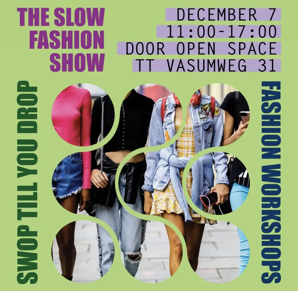 The Slow Fashion Show keert terug op zondag 7 december op de NDSM-werf, dit keer in de ruimte van Door OpenSpace. Bezoekers kunnen deelnemen aan een grote clothing swap met een zorgvuldig samengestelde startvoorraad, en creatieve workshops volgen van jonge makers, zoals upcycling en werken met denim. Tegelijkertijd vindt er een vintage sale plaats van Vintage Island. Het team zoekt bovendien jonge enthousiastelingen die willen helpen bij de swap of elders tijdens het event, met ruimte om mee te groeien binnen het project. Kaarten zijn gratis.