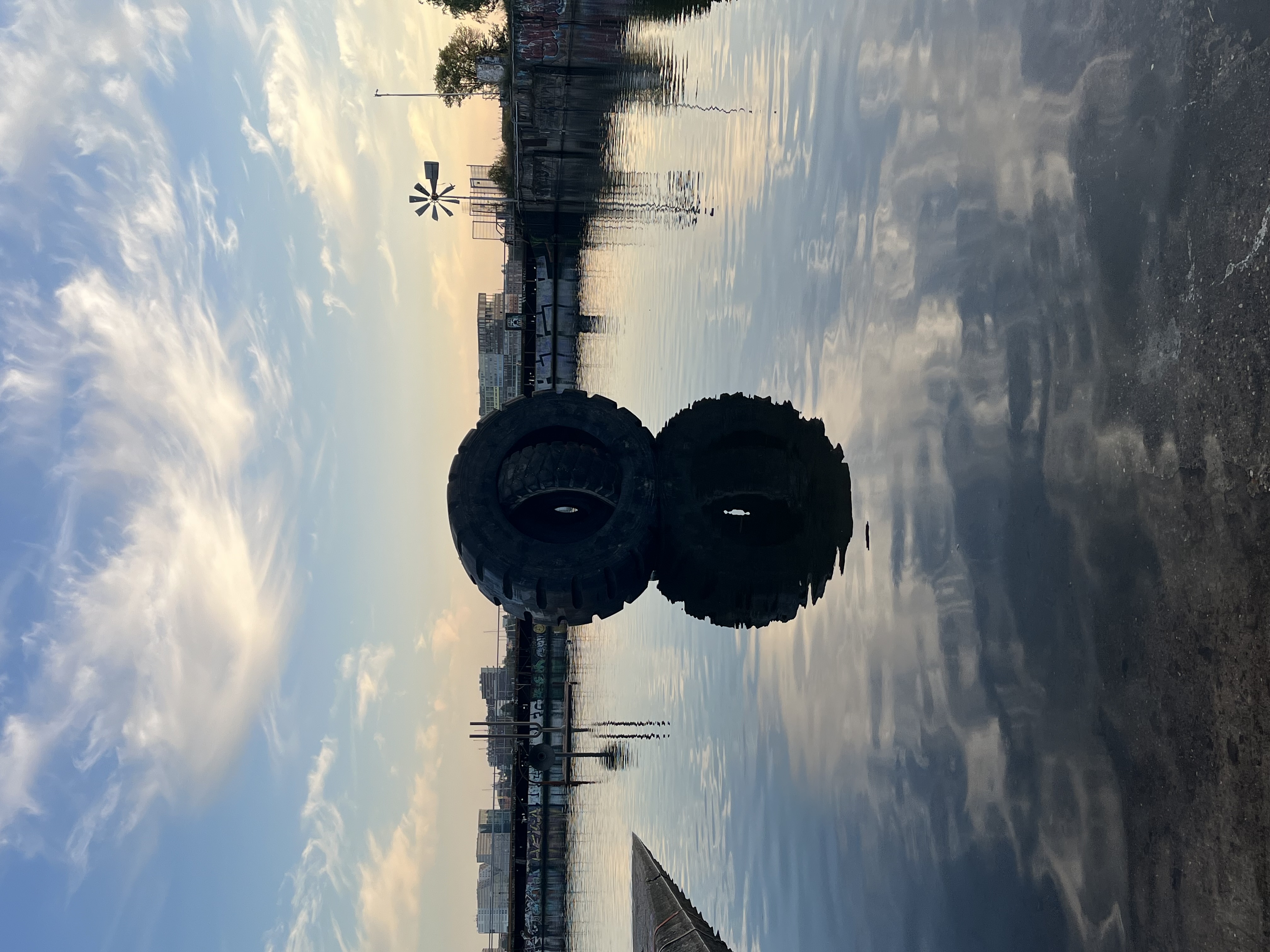 All the Tyres from Iceland onderzoekt zo thema’s als transport, afval en de economie van duurzaamheid. Tegelijkertijd onthult Michael Pinsky’s onderzoek de verborgen sociale en culturele context van havens: handelsroutes, familietradities en een complex web van materiaal stromen binnen de beloften van de circulaire economie. De banden, ooit bedoeld om beweging mogelijk te maken, staan hier symbool voor wereldhandel en de levenscyclus van materialen. Hun ronde vorm verwijst naar de circulaire economie, waarin materialen steeds opnieuw worden ingezet—van oorspronkelijke vorm, naar versnipperde grondstof, tot alternatieve producten in de productieketen.