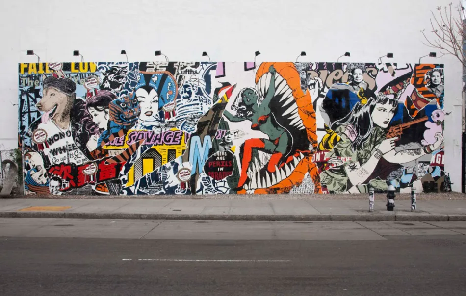 Between the Sheets presents a focused exhibition by FAILE, the Brooklyn-based duo of Patrick McNeil and Patrick Miller, whose work has long challenged the boundaries between the street and the studio, the iconic and the ephemeral. With a practice rooted in printmaking, collage, and visual sampling, FAILE has spent the past 25 years constructing a vocabulary that draws from mass media, sacred imagery, pulp fiction, and the language of the city.