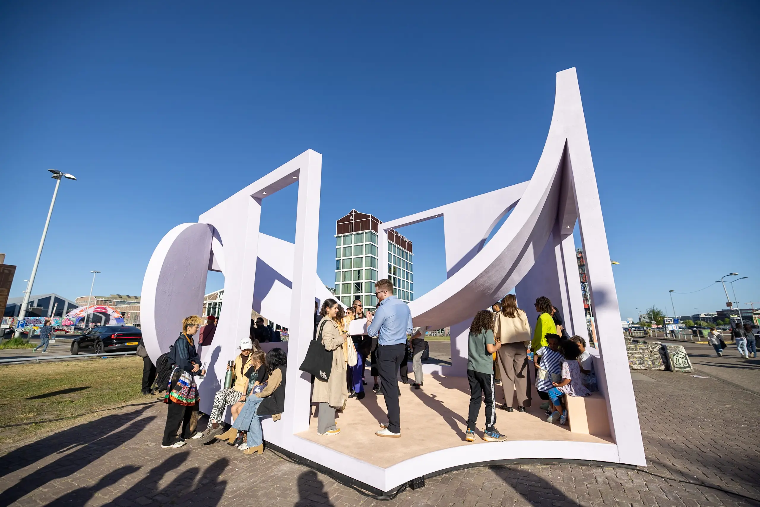 Welke verhalen zijn van waarde als een plek verandert? Hoe kunnen verhalen die van belang zijn voor de stad bewaard worden? Met Kinship Library brengt Afaina de Jong, architect, onderzoeker en oprichter van architectuurstudio AFARAI, onderbelichte stemmen tot leven op NDSM. Van 16 mei - 9 november kon het publiek luisteren naar orale geschiedenissen over de stad en specifiek over NDSM, in een architectonische installatie.