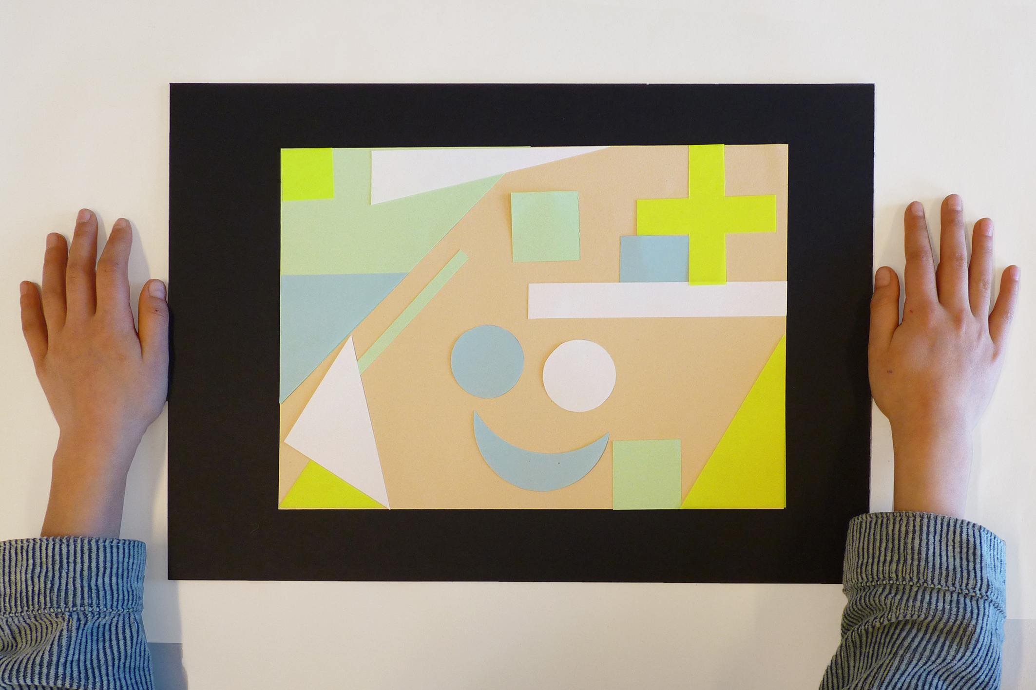 Explanation: Bright and soft colors make you happy. And you can mix them. My father is from America, so I made two surfaces. The arrow is because rich people can also give something to the poor.