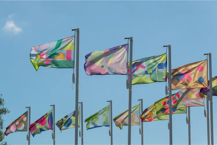 The students learned from each other and shared their ideas. ONE is a celebration of the children's imagination and their unique ideas. It reminds us that, young and old, we can build tomorrow's world together. Visitors can discover the stories behind the flags online via the QR code. You can also read quotes from the conversations with the children.