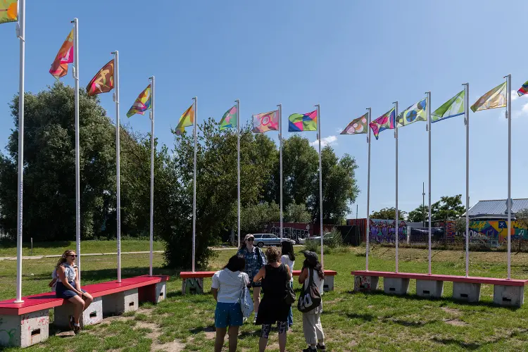 Flags are powerful symbols: they express who we are and connect people, but they also set boundaries. ONE is an educational project led by artist Valerie van Leersum, in collaboration with De IJsbreker in Amsterdam-Noord. Van Leersum invited the children to use these symbols to create their own vision of the world.